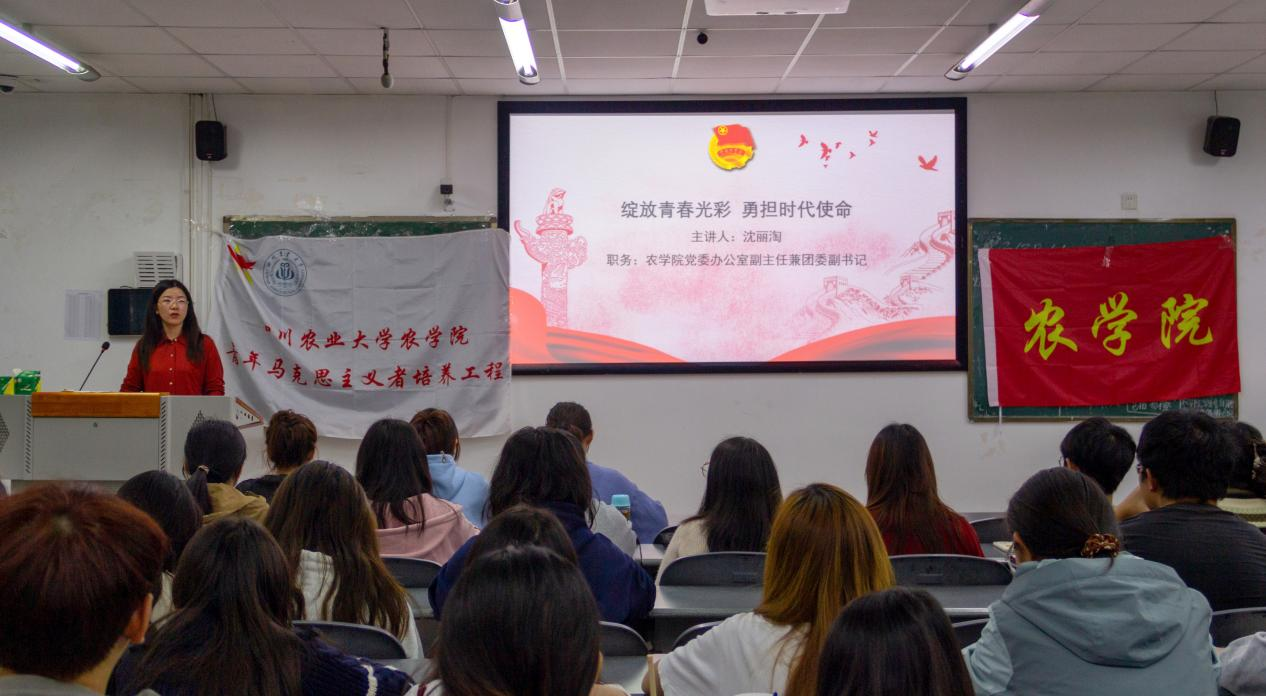 为加强青马班理论知识学习,激励学员在新时代中勇担使命重任,11月1日中午四教B区4208,农学院第三期青马班组织进行理论课程的学习。此次理论课程由农学院党委办公室副主任、团委副书记沈丽淘进行授课。