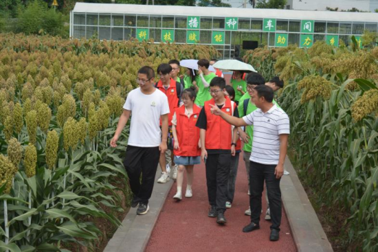 团队成员在水口村支部书记徐崎峰的带领下实地参观了宜宾市南溪区酿酒专用粮现代农业园区播种车间和高粱基地,深入考察了新品种栽培中心和无土栽培中心。徐崎峰热情仔细地给同学们做了讲解。