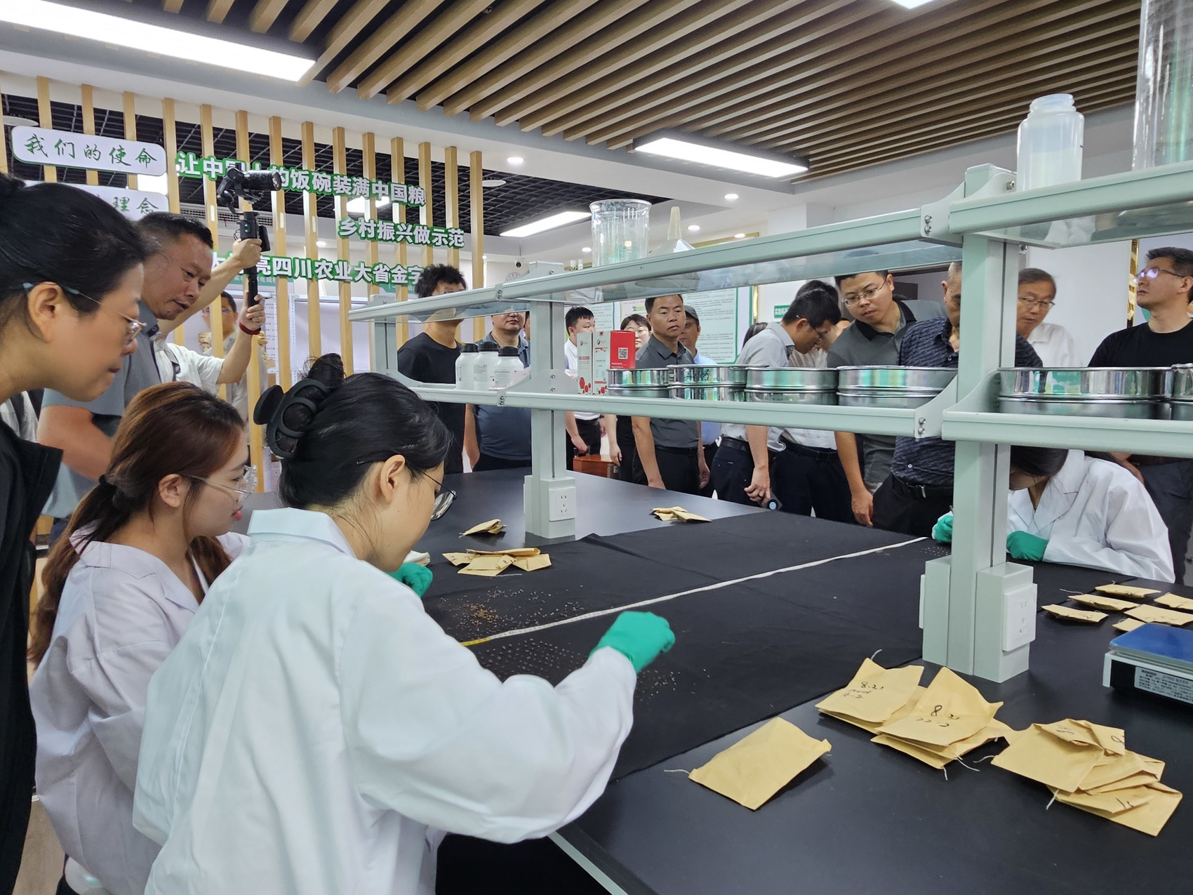 博士工作站内,学生正在做大豆根瘤试验。