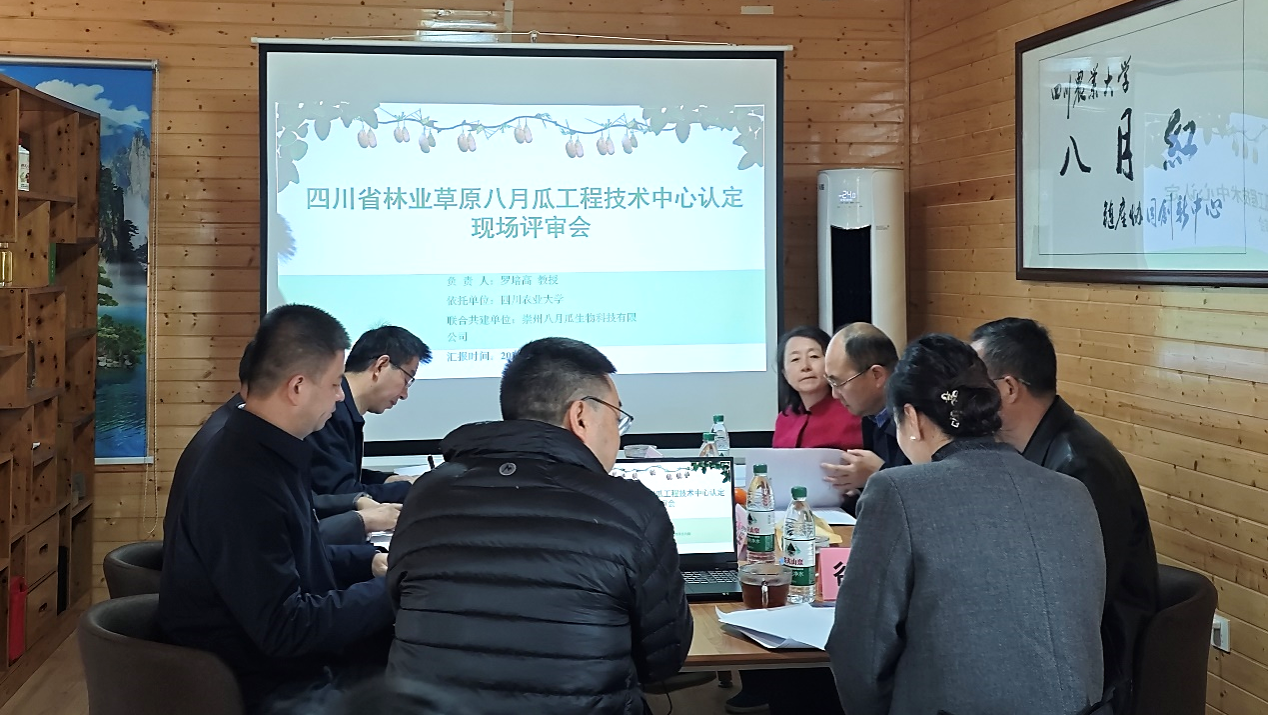专家组一行深入八月瓜园,对园区的种植情况、科研设施等进行了细致查看,听取了工程技术中心建设方案汇报。会上,罗培高教授汇报展示了近年在八月瓜新品种选育、栽培技术集成研究、成果转化以及产业链构建等领域工作成效。专家组对此进行了深入讨论和评估,对八月瓜团队工作给予了充分肯定,一致认为八月瓜工程技术中心符合《四川林业草原工程技术研究中心管理办法》的要求,一致通过该工程中心的认定。