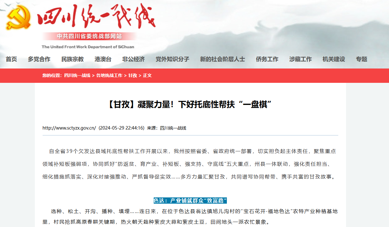 自全省39个欠发达县域托底性帮扶工作开展以来,我州按照省委、省政府统一部署,切实担负起主体责任,聚焦重点领域补短板强弱项,协同抓好“防返贫、育产业、补短板、强支持、守底线”五大重点,州县一体联动,强化责任担当、细化措施抓落实、深化对接强推动、严抓督导促实效……多方力量汇聚甘孜,共同谱写协同帮带、携手共富的甘孜故事。