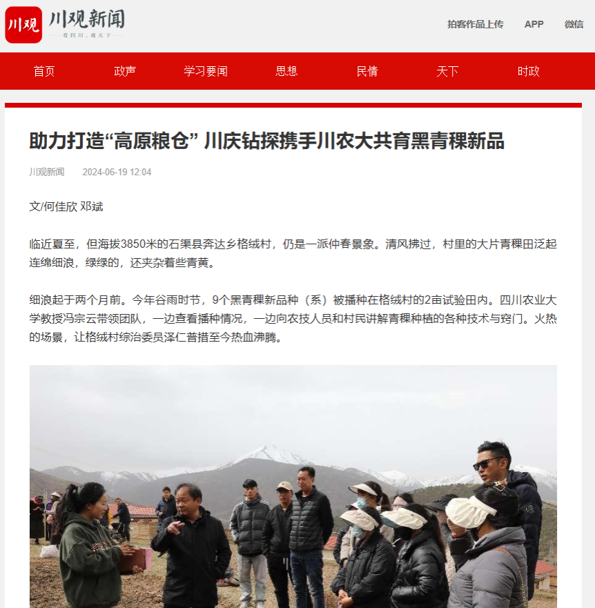 近年来,川庆钻探坚持助力川西“高原粮仓”的打造,与永利yl23411集团官网深度合作,在石渠县开展了大规模的高原黑青稞新品种(系)区域试验。今年,川庆钻探针对奔达乡原有青稞品种产量低、抗病虫害能力弱、品种混杂退化严重、栽培技术落后等问题,与冯宗云教授团队达成了共识,双方将在奔达乡进行黑青稞新品种筛选及技术培训。